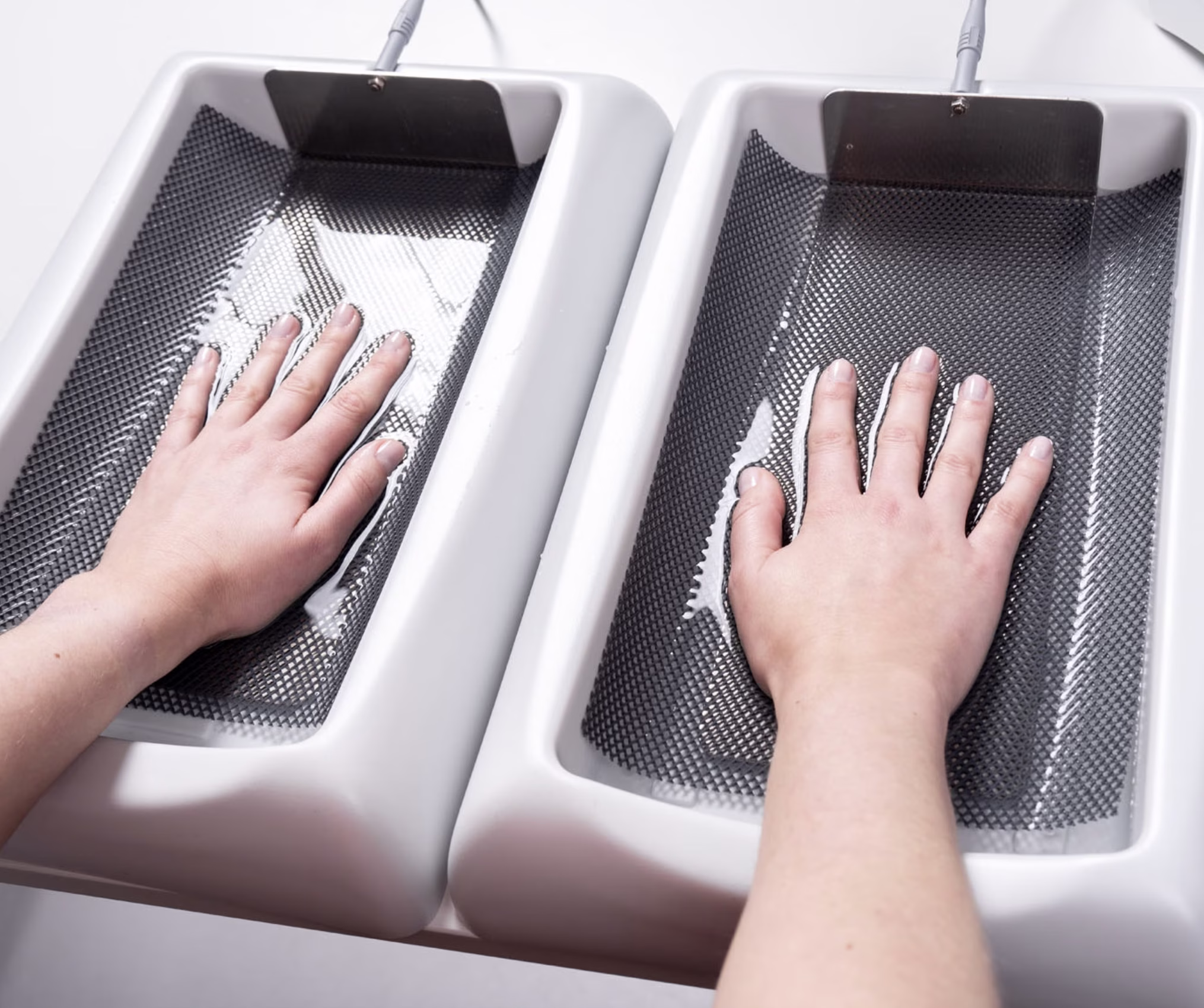 Die HIDREX Therapiewannen bieten eine bequeme, ergonomische Lösung für die Iontophoresebehandlung – ideal bei regelmäßiger Anwendung zu Hause oder in der Praxis. Perfekt geeignet für die Therapie von Händen und Füßen, auch bei großen Schuhgrößen.